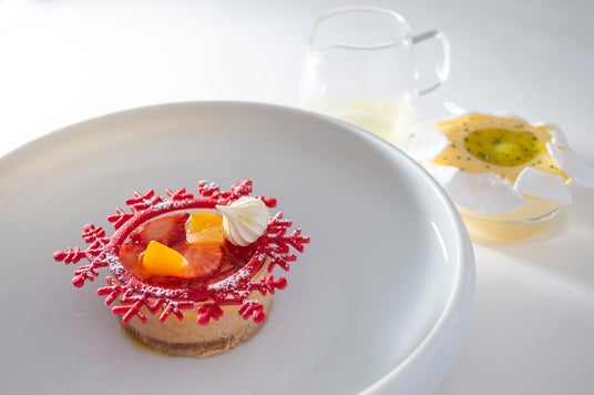 〈イートイン限定〉苺と柚子のデザート(コーヒーまたは紅茶付き)¥1850※要予約・飾りは変わります|コンフィチュール アッシュ