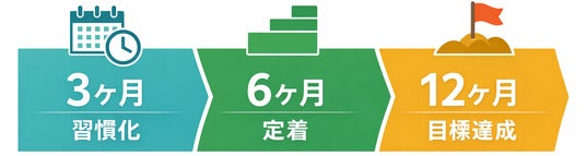 - 3ヶ月:生活の中に無理なく取り入れ、習慣化を目指す期間