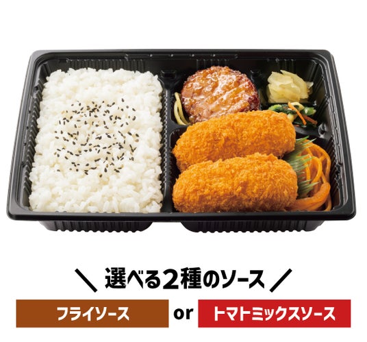 「ほっともっと」のカニクリームコロッケは、鳥取県境港産の紅ズワイガニを使用しており、紅ズワイガニの旨味とコクのあるクリームソースが一体となった、口あたり滑らかで贅沢な味わいです。上品でやさしい味わいの中に、紅ズワイガニの風味が広がります。ソースは定番の「フライソース」と、新登場の「トマトミックスソース」からお選びいただけます。「トマトミックスソース」は、トマトをベースにしつつ、本醸造醤油や昆布エキスを加えることで、ごはんにも合う特製ソースに仕立てました。『カニクリームコロッケ弁当』は、カニクリームコロッケ2個とポテト、ブロッコリーがセットになっています。また、ミニハンバーグやナポリタンもセットになった『カニコロバラエティ弁当』や、カニクリームコロッケだけでなく、から揚・メンチカツ・エビフライなど様々なおかずを一度に味わえる『カニコロミックス弁当』、豪華洋食コンビを堪能できる『カニコロ&デミグラスハンバーグ弁当』も取り揃えております。「カニクリームコロッケ」は単品での販売も行っているため、お好きなお弁当とぜひ一緒にお楽しみください。