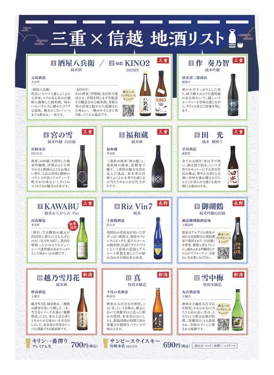 ■「三重×信越」提供予定の地酒ラインナップ