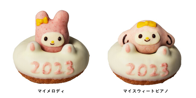 第1弾は、可愛いウサ耳が生えた2023年ドーナツの上に、マイメロディとマイスウィートピアノを載せました。
