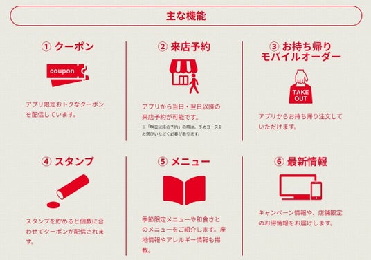 ■アプリ機能 お知らせ/クーポン配信/来店予約/持ち帰り注文機能など