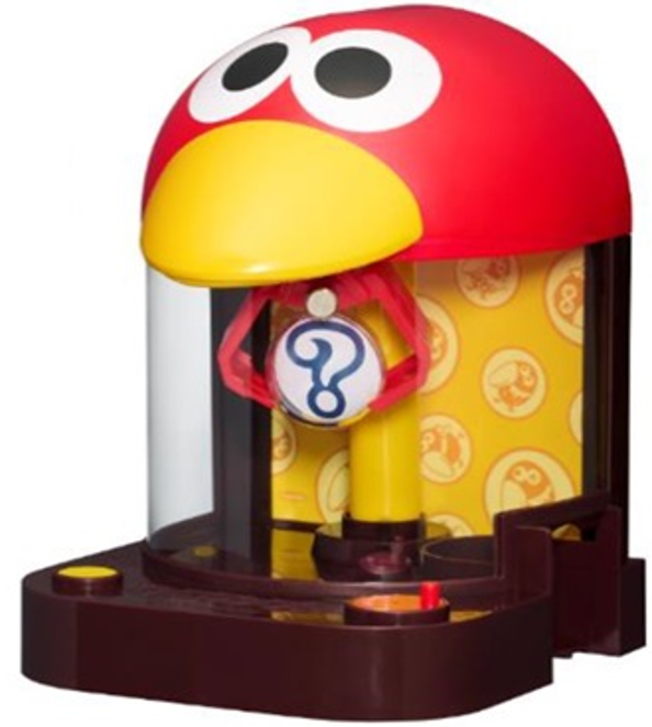 「金のキョロメダル缶」は、クエックエックエ~♪でおなじみの「チョコボールのうた」を聴きながら、キョロちゃんをモチーフにしたメダルゲームにメダルを入れて楽しむことができます。メダルで押し出して獲得できるのはヒミツのおもちゃ。メダルゲームの楽しさと中身が気になるワクワク感を体験することができます。