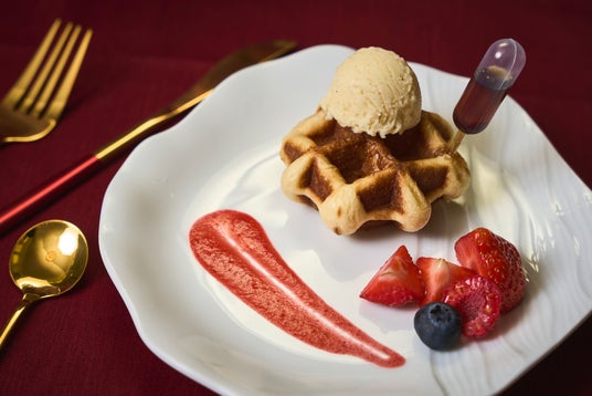 (スイーツ)いちごとライチと桃のヴェリーヌ/いちごのエクレア/いちごのチョコレートフラン/いちごのミルフィーユ/いちごとバニラのムース/いちごのショートケーキ/いちごのタルティーヌ/いちごのクランブルケーキ/ワッフル(別皿)