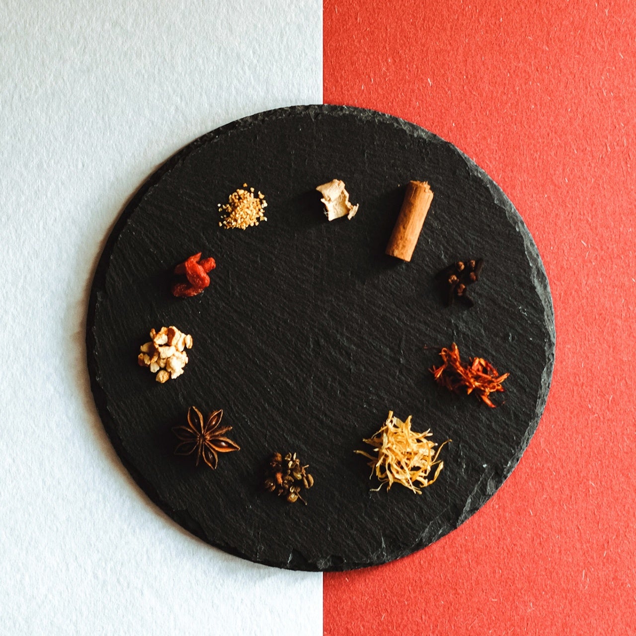 E CA QUIさんが手がける「屠蘇散」をベースに、ボタニカルを中心とした香りの設計と、隠し味としてローズの香りを添えた繊細な味わい調整を施しています。