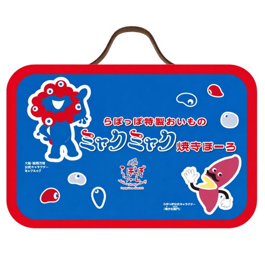 さつまいもスイーツ専門店「らぽっぽファーム」 のオンラインストアにて、大阪万博で会期中累計260万個を販売し大人気だった「ミャクミャク焼き」がぼーろになって新登場いたします!味はプレーンとチョコの2種類をご用意。“ミャクミャク”とらぽっぽ公式キャラクター“焼き右衛門(やきえもん)”がデザインされたオリジナル缶に入れてお届け♪