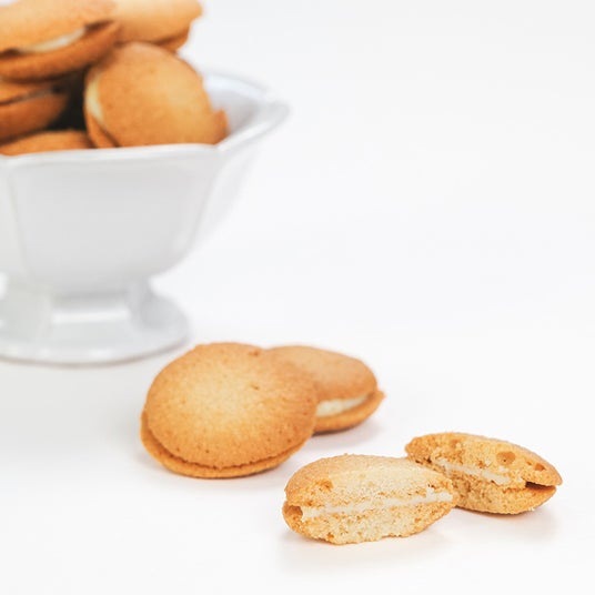 クッキー生地にはアーモンドプードルを練り込み、香ばしさの芯がしっかりと立つように仕上げました。バターには、検討を重ねて選び抜いたコクの深いよつ葉バターを採用。繊細なラングドシャならではの口どけを大切にしながら、きれいな状態でお届けできるよう焼き上がりにも工夫を凝らしています。