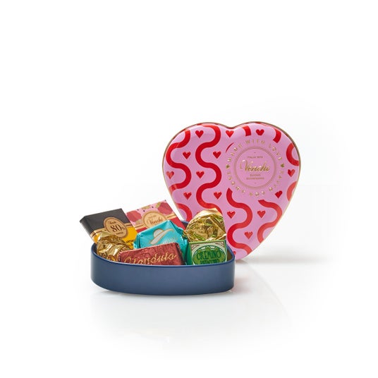 ミニブック缶 アソート ウェーブマイハート 4,320円(税込)青と白のストライプに真っ赤なハートが印象的。7種類8個のイタリアンチョコレートをバランスよくアソートしました。ヴェンキのチョコレートの世界を楽しんでいただけるギフト缶です。