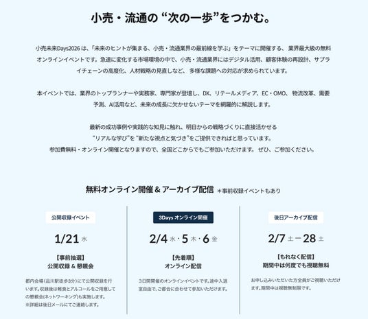 『小売未来Days2026』:2月4日~6日 オンライン開催(参加無料)