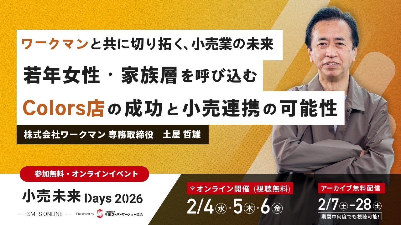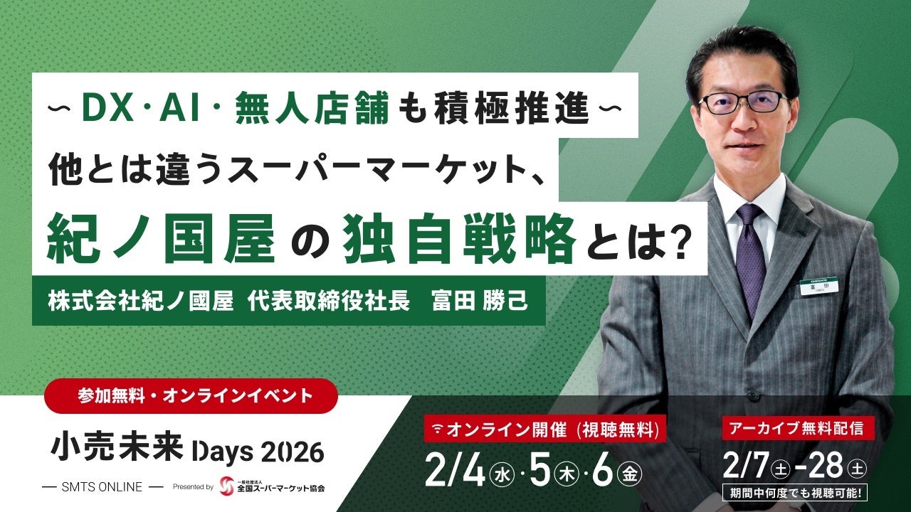 一般社団法人全国スーパーマーケット協会が主催、株式会社プロガイドが運営する特別オンラインイベント『小売未来Days2026』を2026年2月4日~6日で開催します。