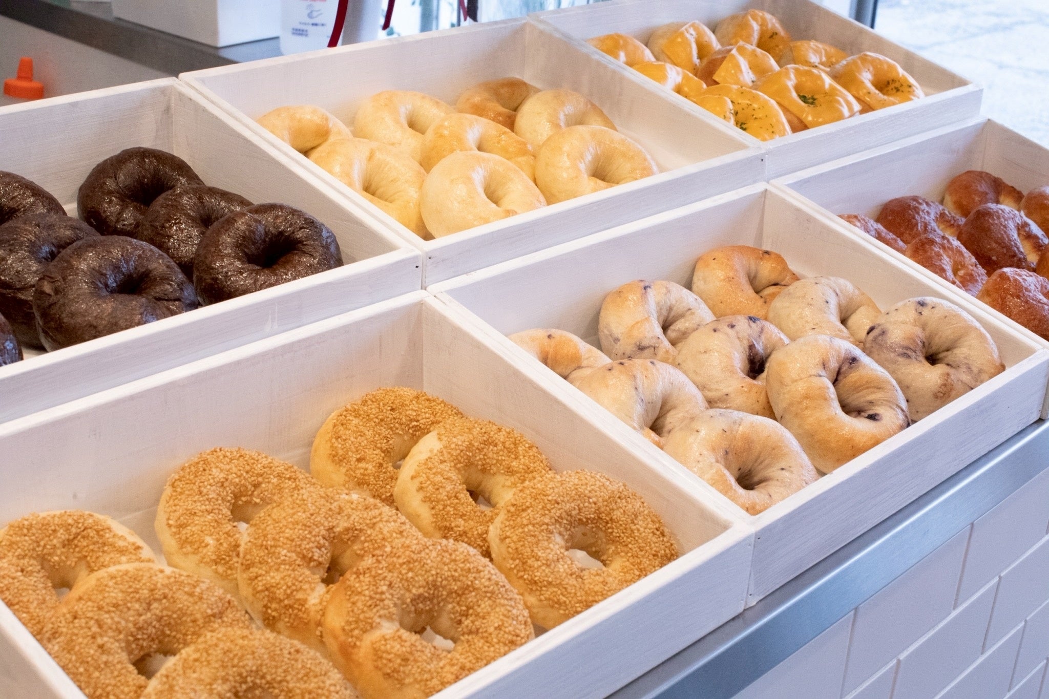 ベーグルは売り切れ次第終了となり、6~7種類のラインナップを展開します。
