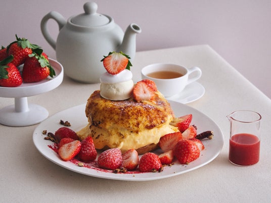 本フェアでは、そんな「“あすかルビー”いちご」を、香ばしく焦がしたクレームブリュレや生バター、ミルクティームースなど多彩な素材と掛け合わせ、パンケーキをはじめ、ケーキやパイなど幅広いメニューに仕立てました。