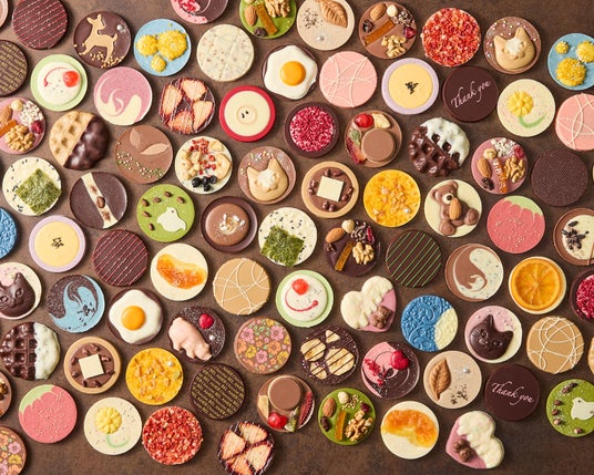 数十種類のチョコレートをベースに素材を合わせ、ブレンドを調整し、具材やデコレーションを丁寧にあしらうことで、繊細で華やかなパレショコラが一つひとつ手作りされています。