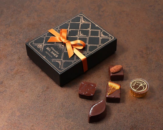 ベルアメールこだわりのチョコレートを中心に、素材と技が織りなす多彩な味わいをお楽しみいただけます。期間限定のフレーバーを加え、季節の贈りものにもふさわしい、上品なボックスに詰め合わせました。