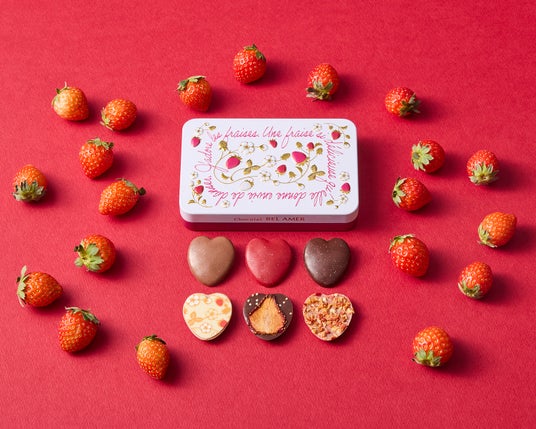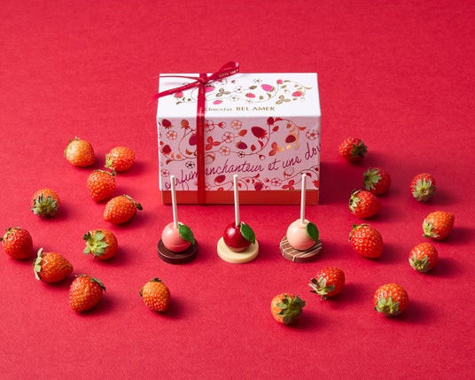 苺の甘酸っぱさとショコラの奥深いコクが調和した、ベルアメールならではの味わいをお楽しみいただけます。