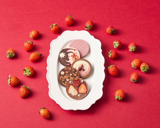 国産苺の美味しさを凝縮した自家製ジュレを閉じ込めたショコラや、苺をかたどった可愛らしいミニチョコレートなど、華やかさと繊細な味わいが魅力の「苺ショコラコレクション」が登場。