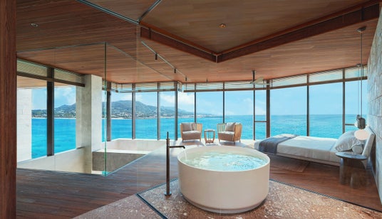 バスルームとサウナからは、目の前に広がるオーシャンビューを一望。