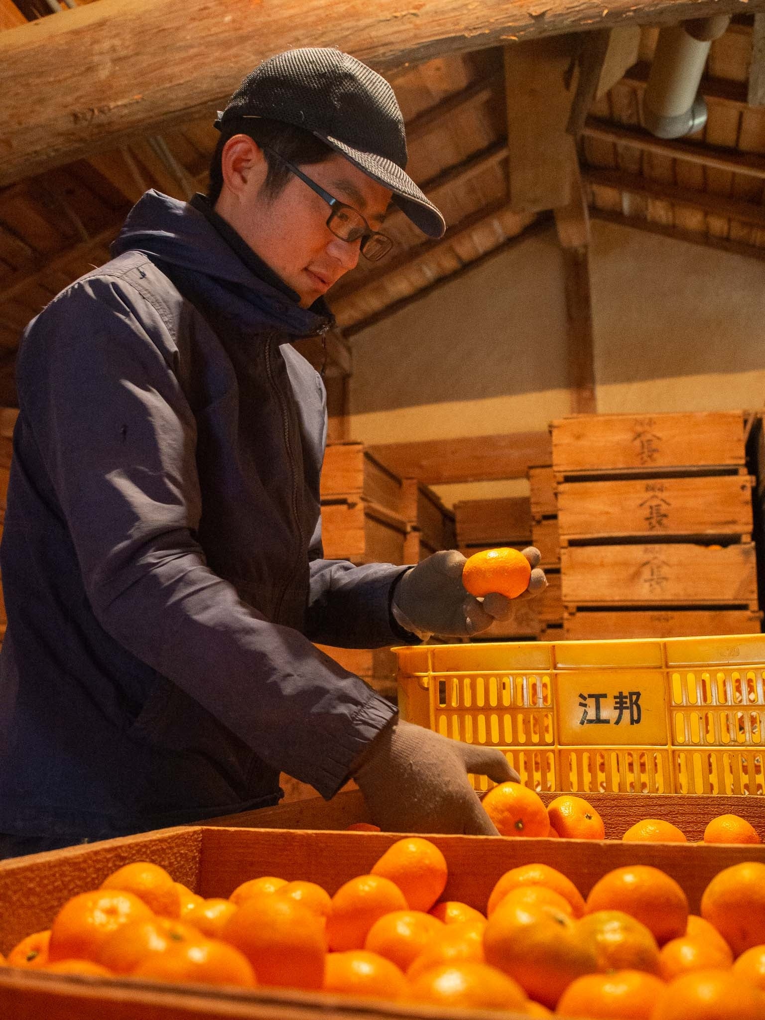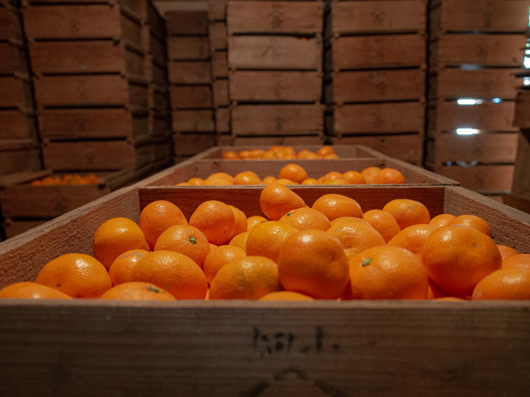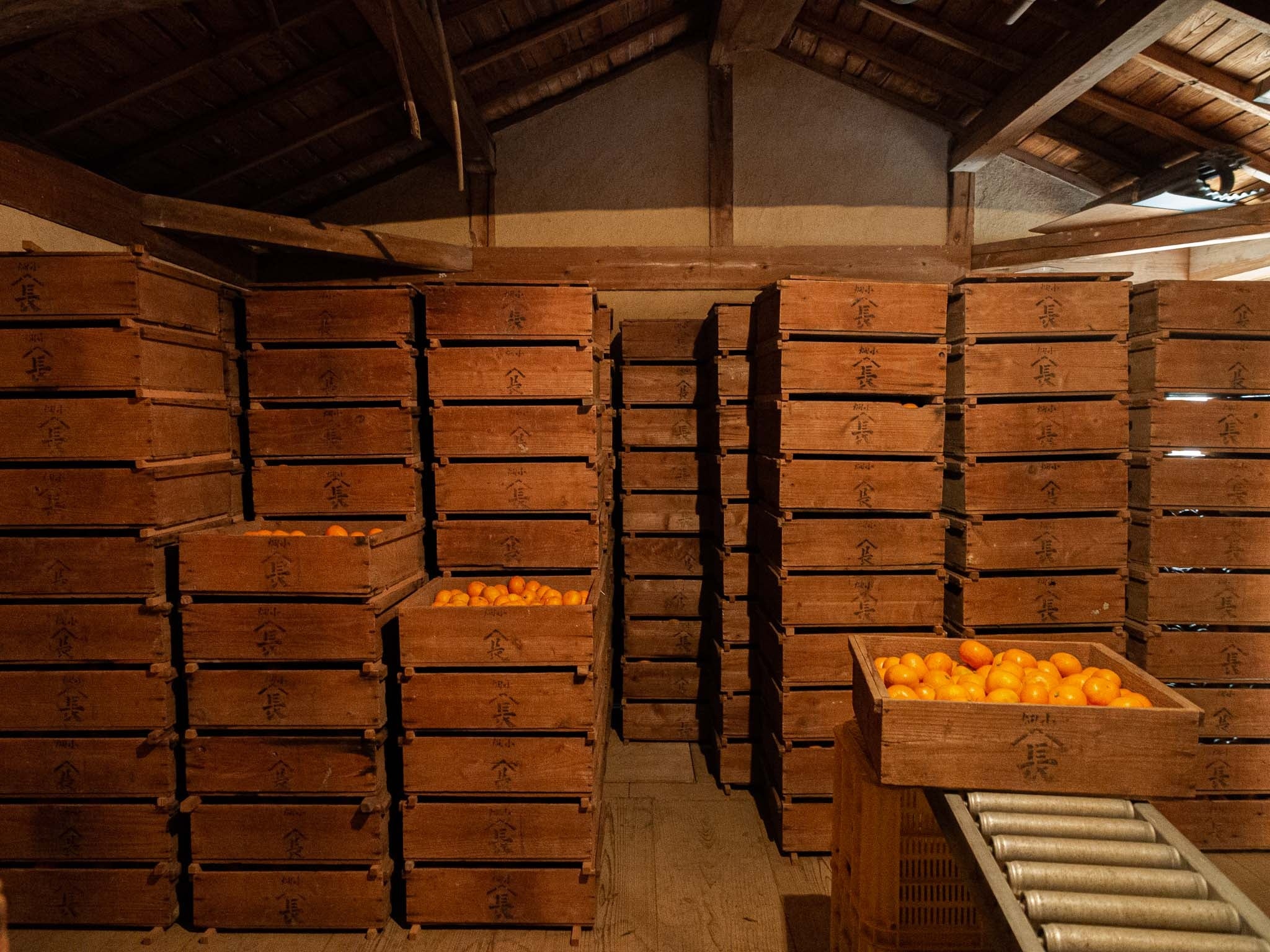 蔵の中で熟成されているみかん
