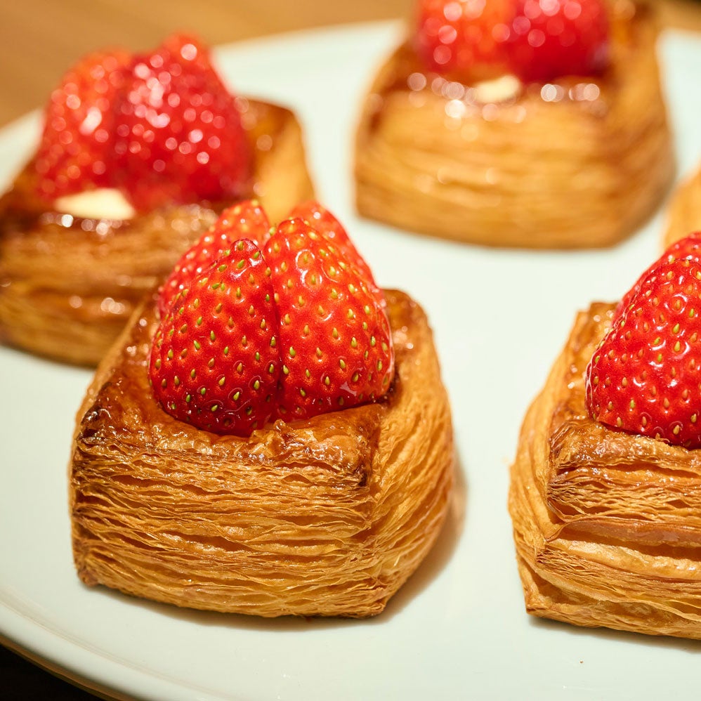 とちおとめデニッシュ 380円(税込) / LAZULI BAKERY栃木県鹿沼市・TOMO and BERRYのとちおとめを贅沢に使用したデニッシュを1日20個限定で販売。(4月末まで販売予定/なくなり次第終了)