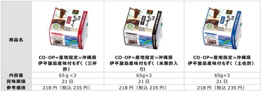 日本生活協同組合連合会(略称:日本生協連、代表理事会長:新井ちとせ)、コープデリ生活協同組合連合会(本部:埼玉県さいたま市、代表理事理事長:熊崎伸、関東信越の6生協、以下コープデリ連合会)は、伊平屋村漁業協同組合の「オキナワモズク海面養殖」がMEL養殖認証*1を取得したことを受けて、発売中の「CO・OP 沖縄県伊平屋島産味付もずく米黒酢入り」をはじめとするもずく商品を、順次MELロゴマーク付きパッケージに切り替え、コープサステナブル*2“海の資源を守る”の商品として販売します。