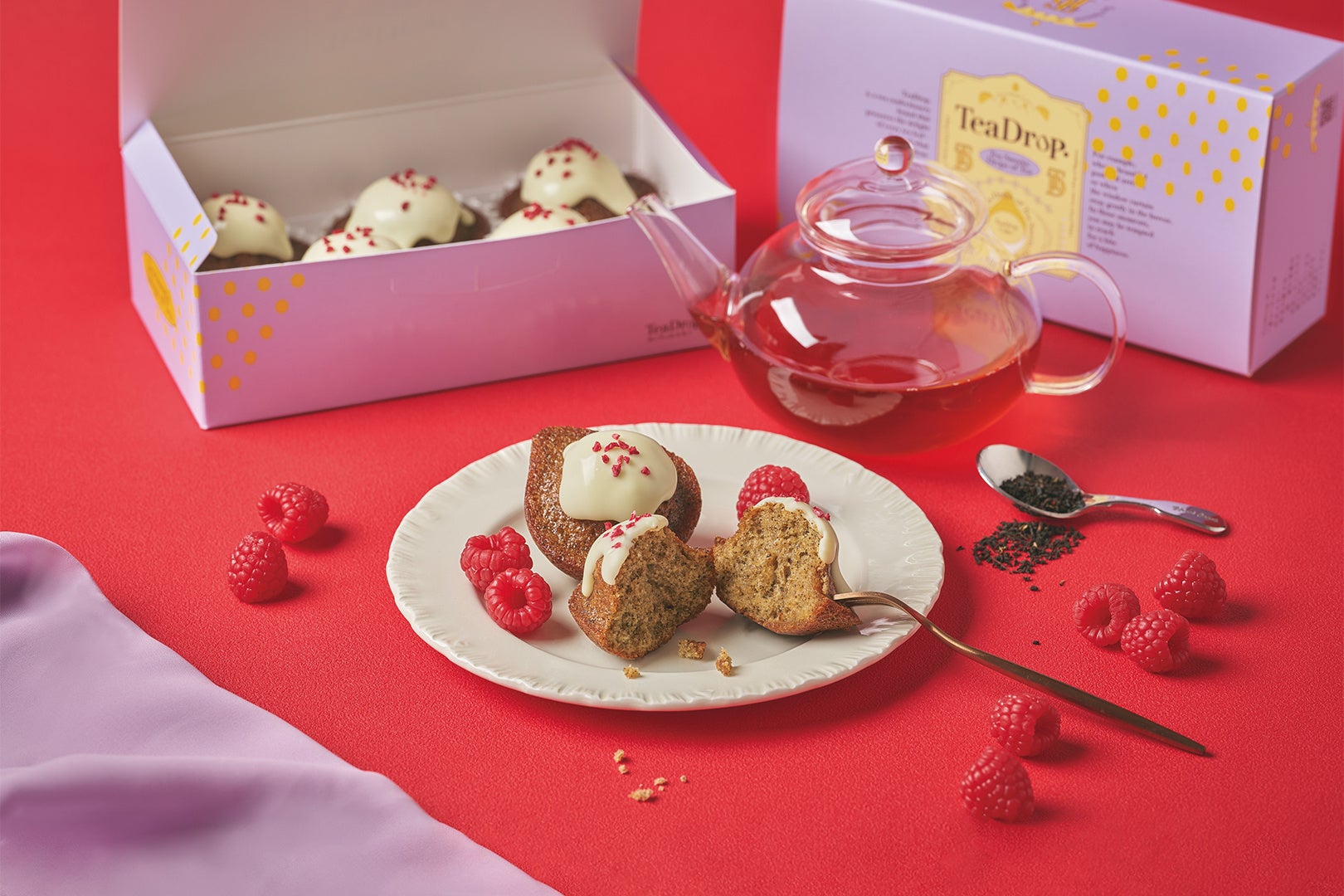 紅茶専門店TEAPOND(ティーポンド)の茶葉を使い、独自の製法で仕上げたケーキです。ベルガモットオイルで香りづけした人気銘柄アールグレイ リバティをたっぷり生地に練り込み、ドロップ型に焼き上げました。仕上げにラズベリーシロップにくぐらせ、ホワイトチョコとフリーズドライラズベリーをトッピングし、見た目も華やかな彩と食感が加わった商品です。