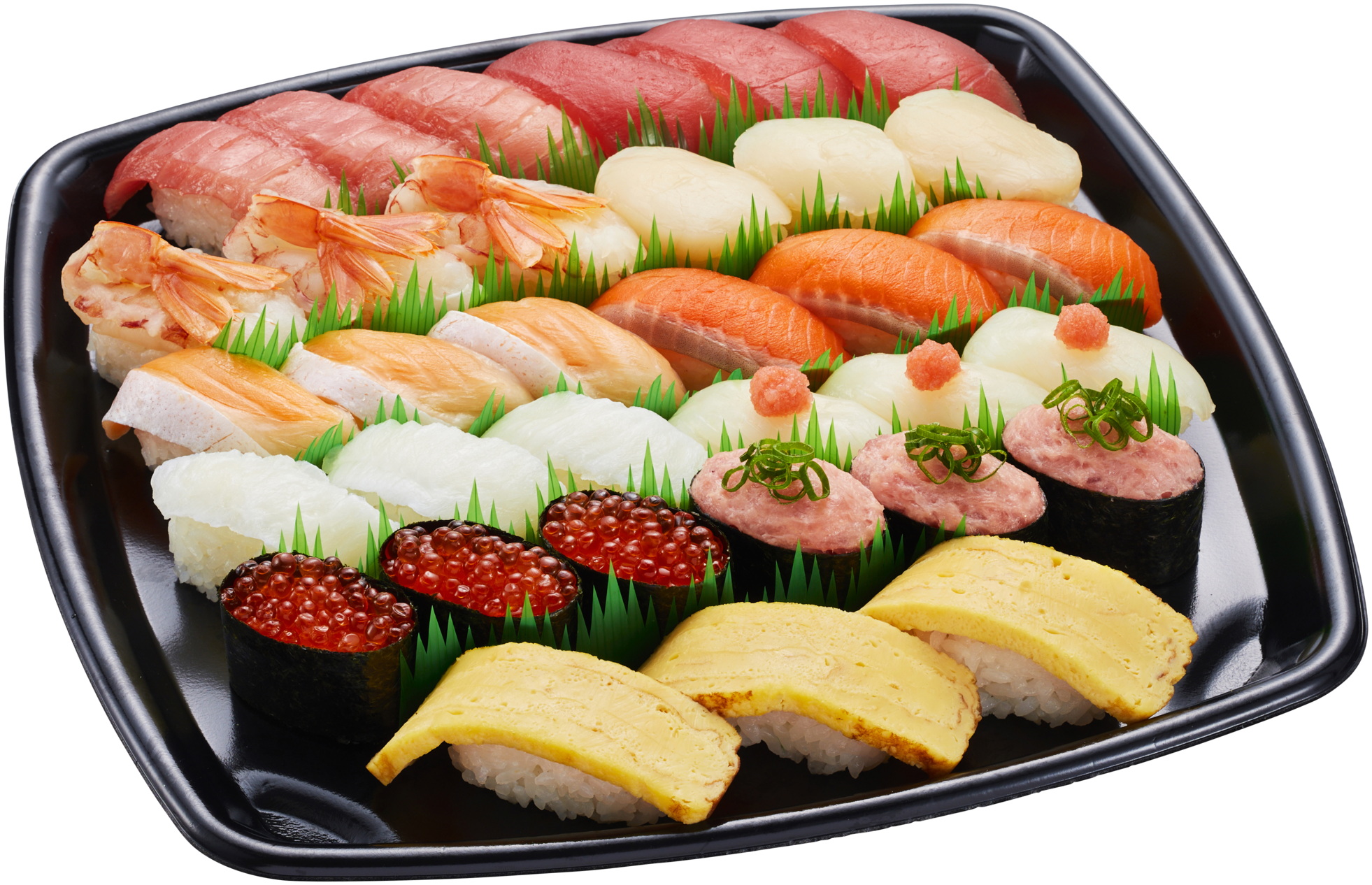 中とろ、まぐろ、赤えび、ほたて、とろサーモン、サーモン、えんがわ、天然むらさきいか たらこのせ、特盛いくら、特盛ねぎとろ、玉子