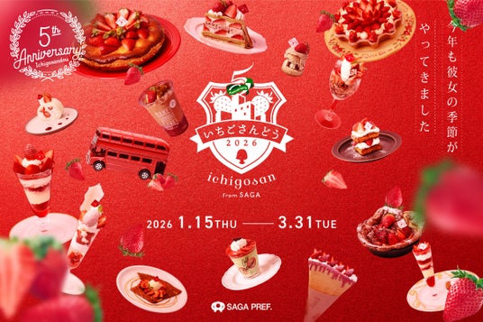 佐賀県は、佐賀のブランドいちご「いちごさん」と表参道のカフェ・レストラン12店舗がコラボレーションし、「いちごさん」メニューを提供する「いちごさんどう2026」を、2026年1月15日(木曜日)の「いちごの日」から、3月31日(火曜日)まで約2か月間に渡り開催します。