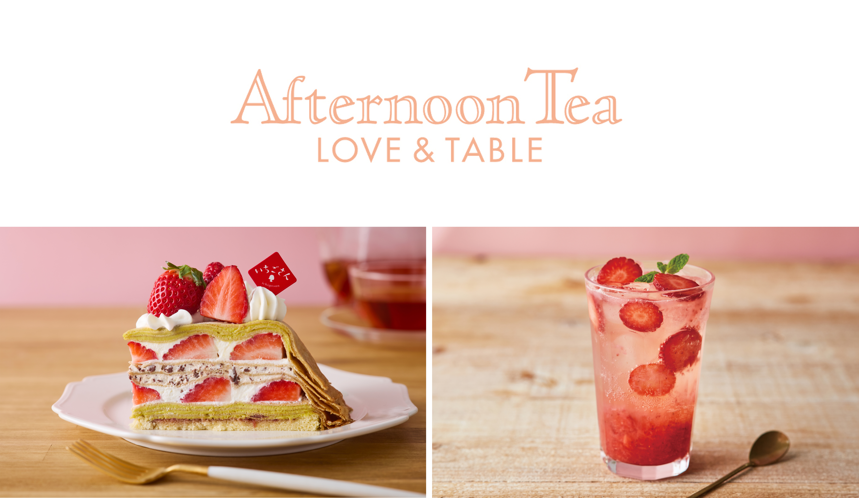 今回のメニューは、「いちごさん」を贅沢に使ったタルトやミルクレープ、アップルパイ、ミルフィーユといった王道スイーツに加え、見た目にも華やかなスペシャルパフェが登場。さらに、ダッチベイビーや抹茶ムース、スコーンなど、幅広いラインアップをお楽しみいただけます。ドリンクには、「いちごさん」のやさしい甘さを引き立てるソーダやSNSで話題のミルクティーをご用意しました。