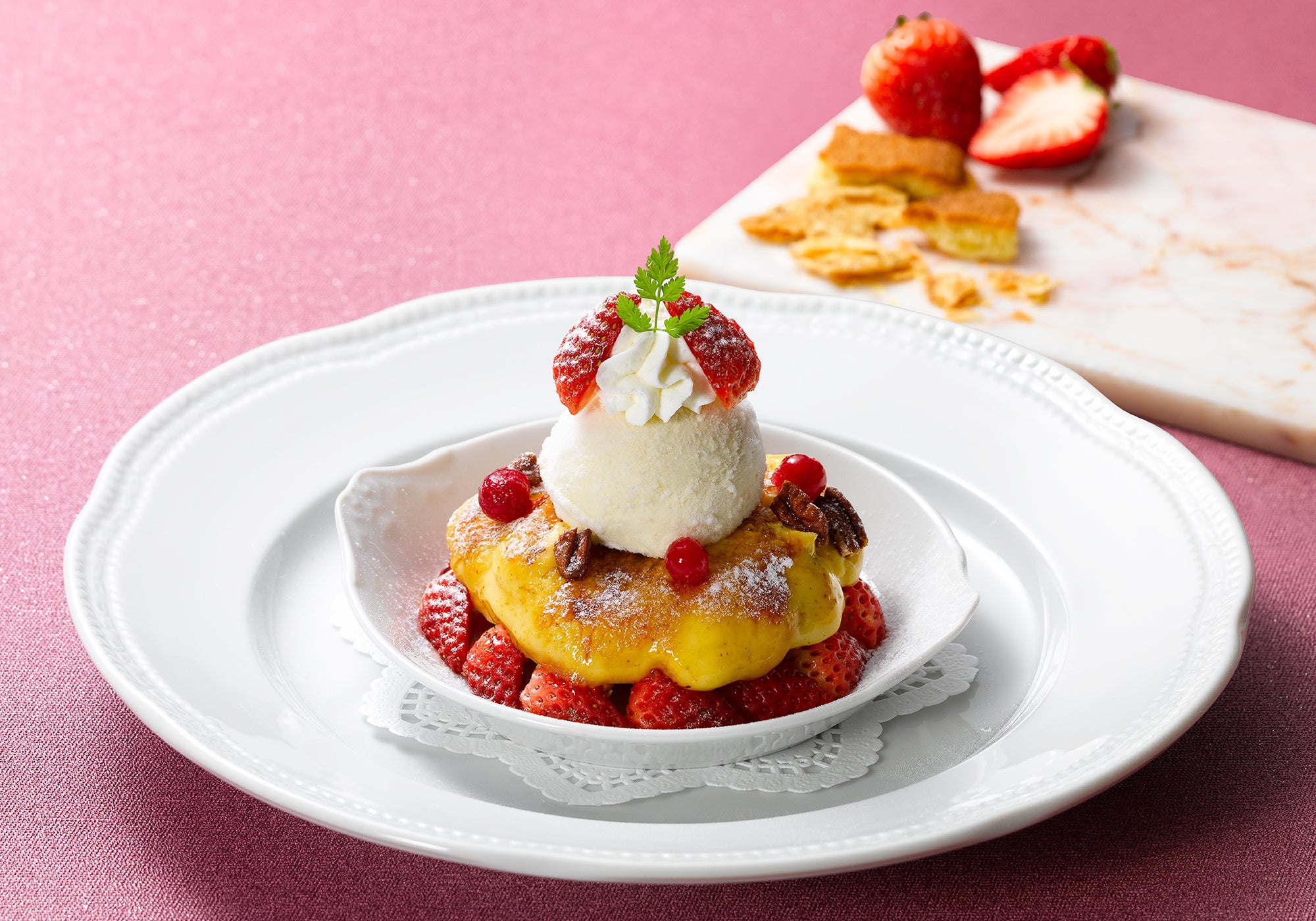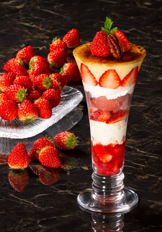 1st シーズンでは「苺の美味しさをそのままに」をテーマに、甘ずっぱい苺を主役にした王道のラインアップを取り揃えました。人気の「苺のブリュレパフェ」は、フレッシュ苺を昨年より1粒増量し、さらに苺を楽しめるようリニューアル。また新商品として、フレッシュ苺とサクサクのパイ、濃厚なカスタード、バニラアイスクリームを重ねた「苺のパイ・ア・ラ・モード」や、フレッシュ苺やスポンジケーキ、ホイップクリームにレモンカスタードが爽やかなアクセントを添える「苺のトライフルパフェ仕立て」が登場いたします。苺が持つ甘ずっぱい美味しさを心ゆくまでご堪能いただけるよう、デザート開発担当パティシエが仕上げた季節限定のスペシャリテデザートをお楽しみください。