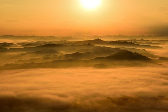 房総半島中央、標高379mの鹿野山に位置する「鹿野山九十九谷展望公園」は、房総三山のひとつに数えられる展望公園で、上総丘陵が幾重にも連なる“九十九谷”を一望することができます。冬季の雨上がりの早朝、霧に包まれた山々が浮かび上がる光景はまるで水墨画のようで、雲海が出現すればさらに幻想的。夜明け前や日の入り前の柔らかな光も絶景で、澄んだ空気の中で星空観賞も楽しめます。