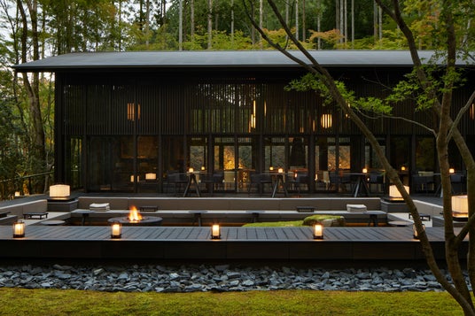 アマン京都は、京都の北、左大文字山から続く鷹峯三山の麓に息づく、密かな森の庭に佇むリゾートです。約2万4千平方メートルの広い敷地内には、アライバル棟、リビング棟(オールデイダイニング)、レストラン棟(日本料理)、天然温泉を備えるスパ棟、宿泊棟、そして茶室が森の庭に溶け込むように点在しています。隠れ家のようなアマン京都のモダンな建築と、時を経てなお凛と残る庭が織り成す景観で、より奥深い古都の魅力に触れる滞在をご提供いたします。