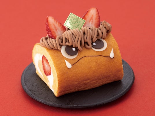 ふわふわの生地に北海道十勝産の100%生クリームと苺を巻き込んだ、かわいらしい鬼のロールケーキです。