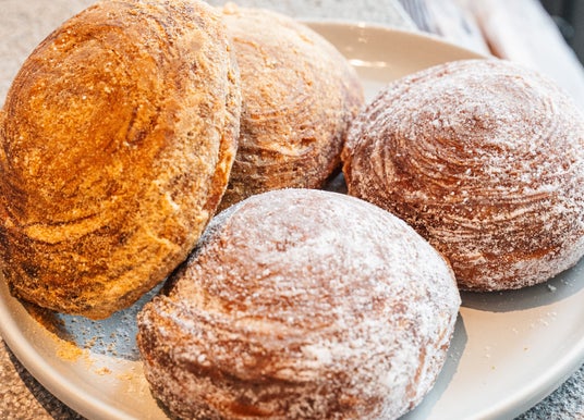 『のびのび』ドーナツは、R Bakerで得意のもちもち食感のドーナツ。ドーナツ生地にお餅のような成分をプラスして生地を製造しました。店内で揚げた後、フレーバーシュガーを振り、中には生クリームを詰めています。フレーバーは、定番のシュガー、きな粉、抹茶シュガー、ほうじ茶シュガーと個性豊かなフレーバーを揃えました。表面をキャラメリゼした“ブリュレ”もユニーク。パリッとした食感、もっちりとした生地、そして濃厚な生クリームが絶品です。