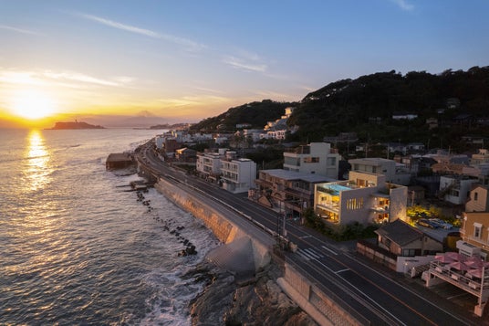 鎌倉・稲村ヶ崎は、相模湾に面した岬で、浜の奥行きが浅く、潮位が上がるほど海との距離を近く感じられる地形が特徴です。