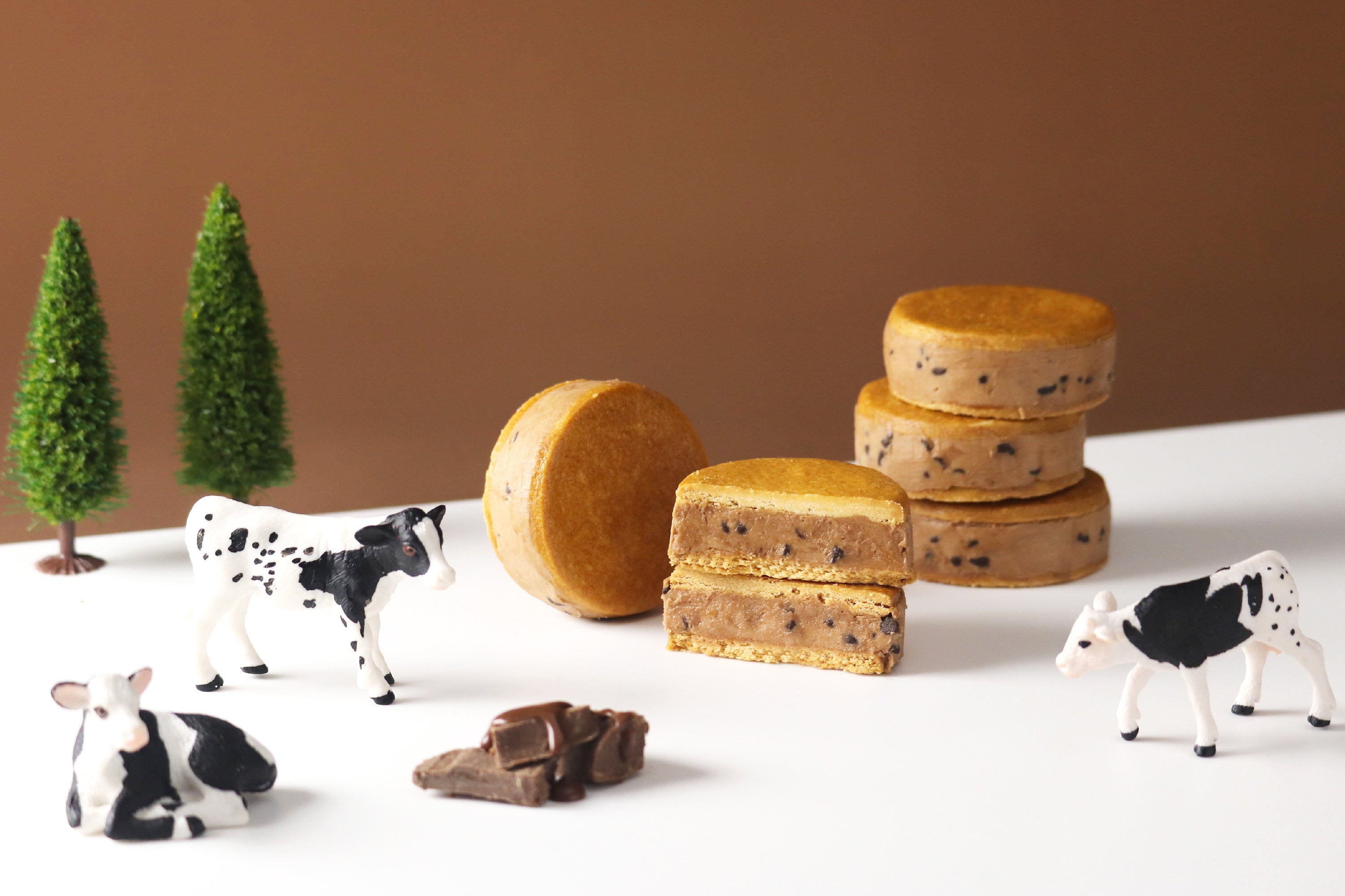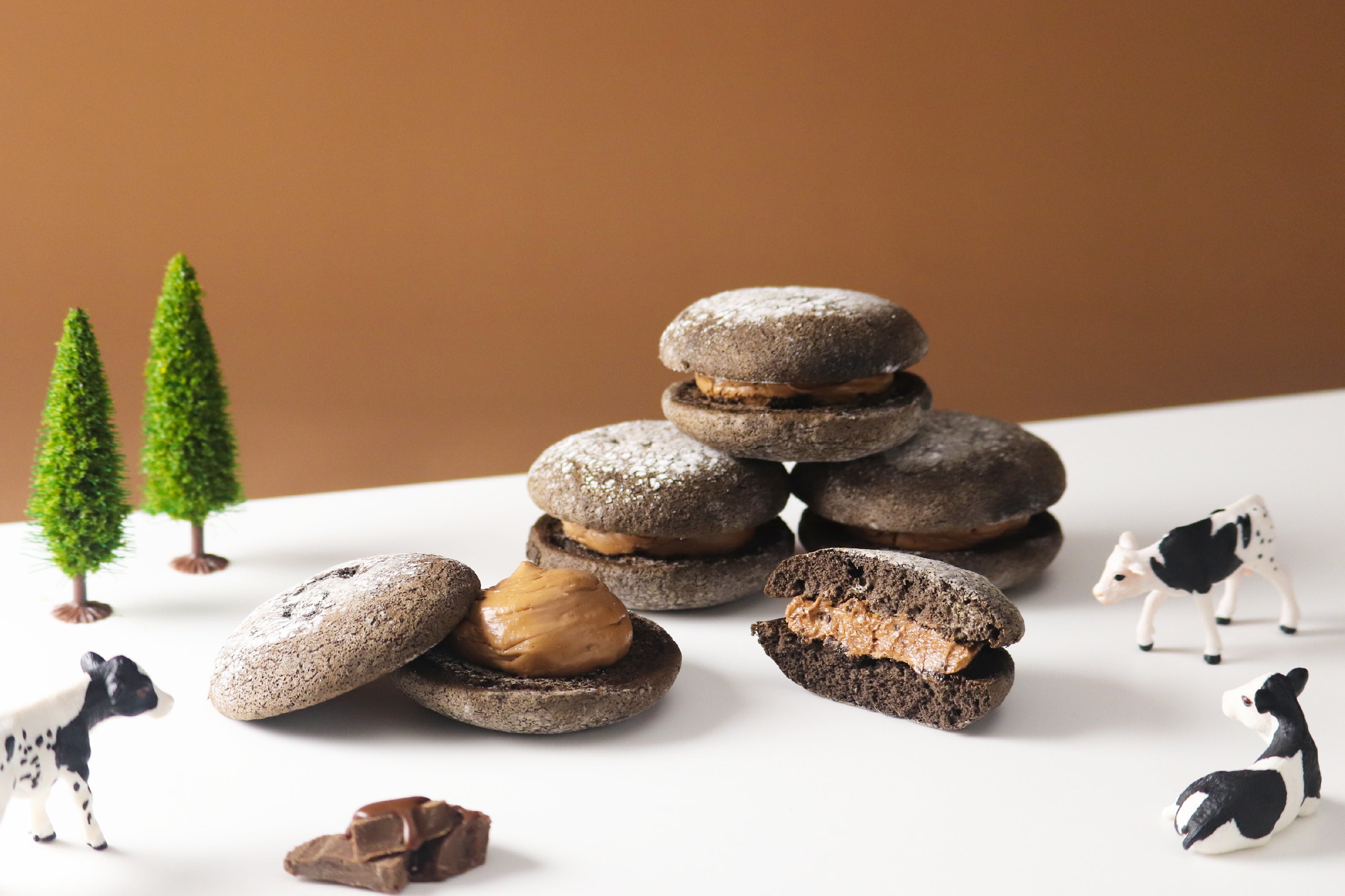 ほろ苦いブラックココア生地が甘さを引き立て、ひと口ごとに、やさしくも満足感のある味わいに。