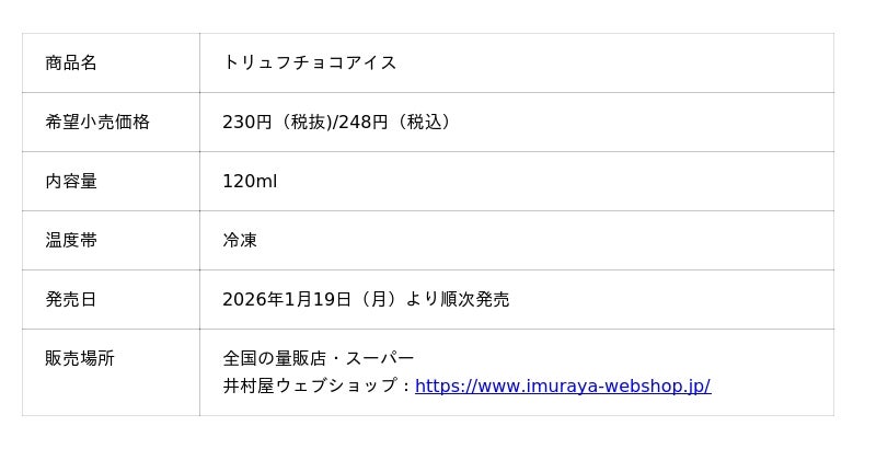 近年、SNSの広がりにより、写真映えだけでなく、割ったりかじったりする瞬間の動きが伝わる「動画映え」を楽しむスタイルが広がっています。この流れはお菓子の定番であるチョコレートにも及び、とりわけトリュフチョコレートでは、中からチョコレートがあふれ出すタイプの商品がバレンタイン催事で行列を生むなど、話題を集めています。そこでこのたび、アイスでも定番フレーバーであるチョコレートを「新食感」で楽しめるカップアイスを発売します。冷凍状態でも「とろっ」となめらかな食感が楽しめるトリュフチョコソースを、濃厚でありながらも軽やかな口当たりのバニラアイスで包み込み、ココアパウダーをトッピングしました。スプーンを入れるとアイスの中からトリュフチョコソースがあふれ出し、まるで本格トリュフチョコのような見た目や食感、味わいを楽しめます。