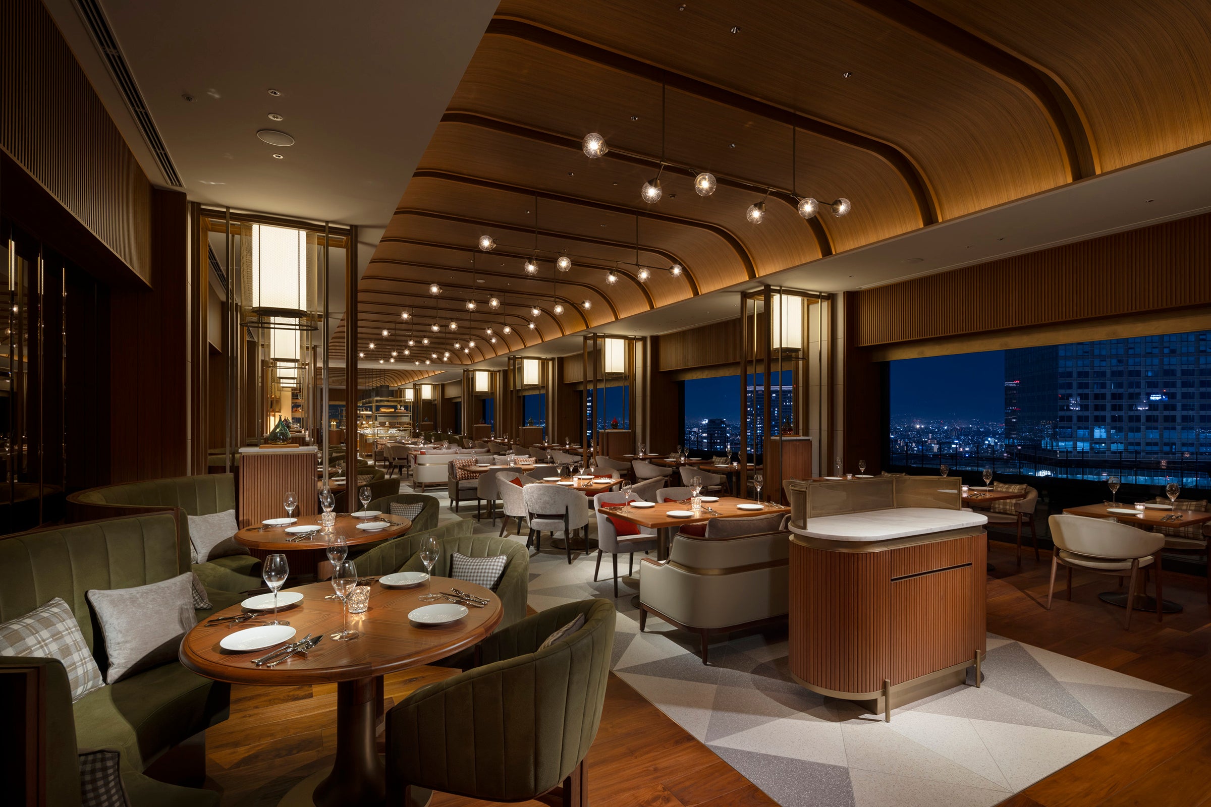 鉄道の発展とともに特別な旅を彩ってきた“豪華列車の食堂車”がコンセプトの「THE-MOMENT GRILL&DINING」。まるで車窓のように連なる大きな窓からは、移ろいゆく大阪のパノラマを見渡せる。