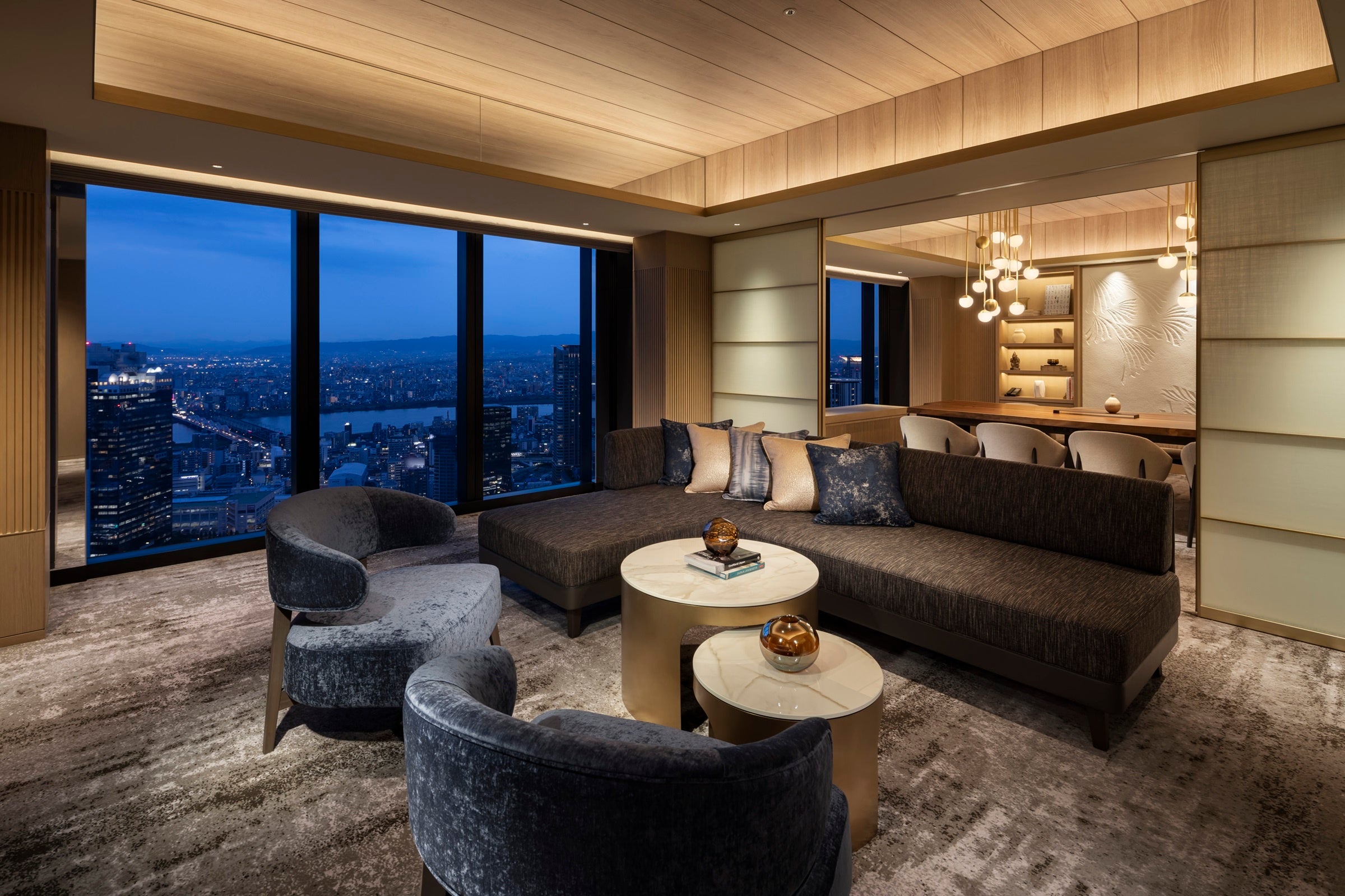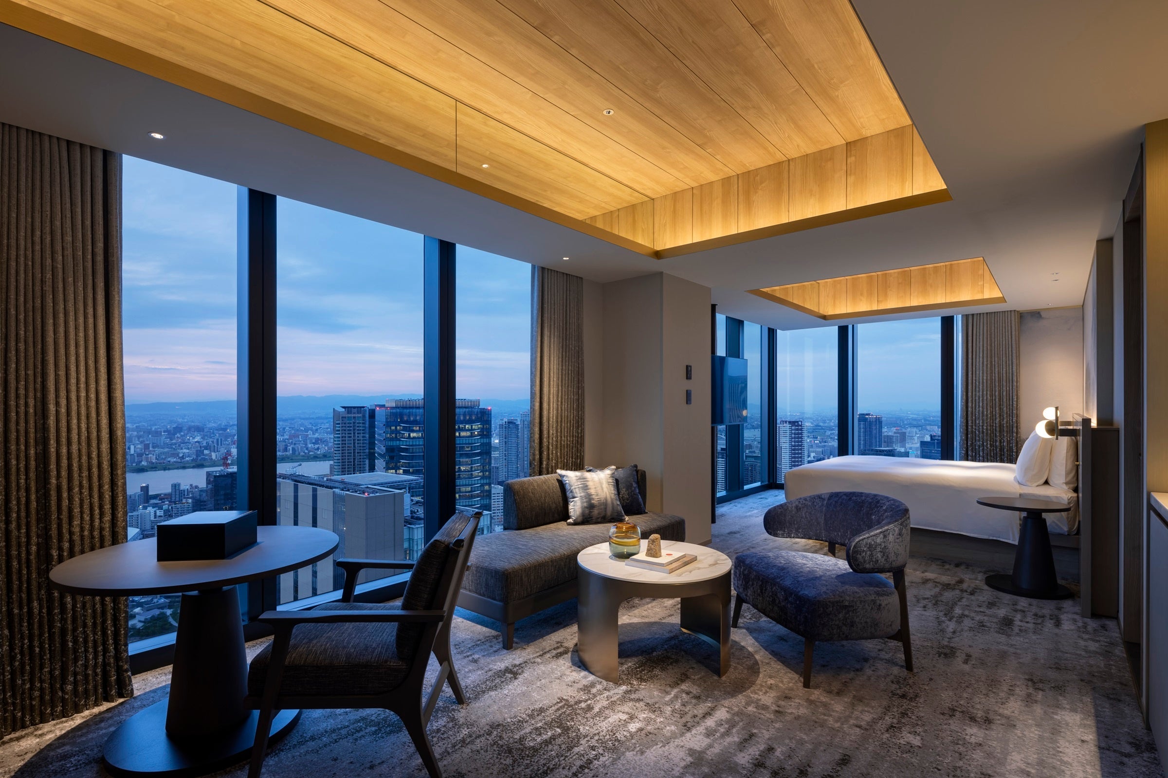 スイートルーム「THE SUITE」では、かつて最も贅沢な眺めが許された場所であろう大阪城の「奥御殿」に着想を得たデザインで、大阪の眺望と空間美が呼応する贅沢な空間。