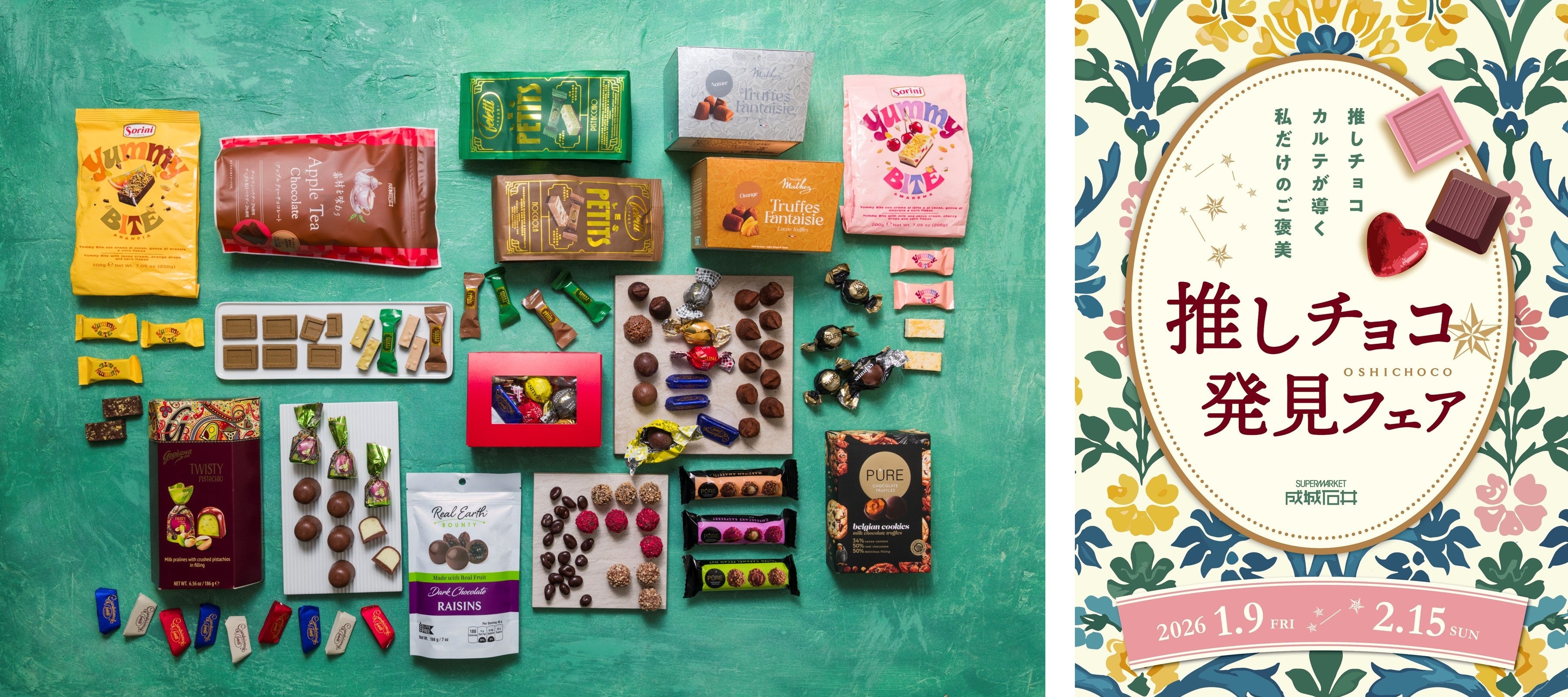 株式会社成城石井(本社事務所:神奈川県横浜市西区みなとみらい、代表取締役社長:後藤勝基)は、2026年1月9日(金)から2月15日(日)まで、成城石井226店舗全店にて「成城石井 推しチョコ★発見フェア~推しチョコカルテが導く、私だけのご褒美~」を開催いたします。