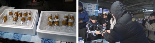 一般社団法人海と日本プロジェクトin岩手(盛岡市)は、2025年12月27日(土)午前6時~午前7時頃、盛岡神子田(みこだ)朝市の会場内で、南侍浜漁業研究会(久慈市)と海と日本プロジェクトin岩手がコラボレーションした「黄金雲丹(南侍浜漁業研究会 × 海と日本プロジェクト in 岩手 オリジナルラベル)」の販売会を開催しました。