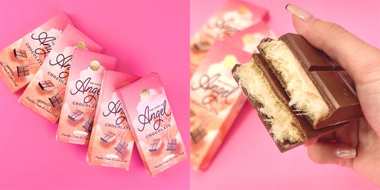 チョコレートの中に、トルコの伝統的なお菓子である綿あめのような砂糖菓子「ピシュマニエ」が入っているのが最大の特徴。ふわふわとしたピシュマニエが“天使の髪”のように見えることから、エンジェルヘアーチョコレートと呼ばれています。