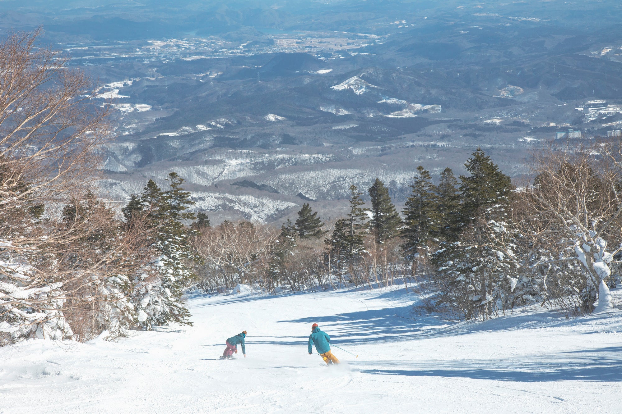 みやぎ蔵王えぼしリゾートは宮城県蔵王町・遠刈田温泉近くにあり、県内唯一のゴンドラを持つスキーリゾート。県内屈指の4.3km滑走が楽しめるダイナミックコースや爽快なダウンヒル、最大斜度35度のコースなど多彩な全10コースがあり、初心者から上級者まで楽しめるバリエーションの豊富さが魅力です。