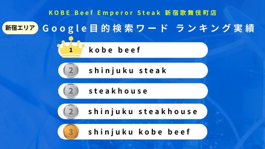 ■【新宿】KOBE Beef Emperor Steak 新宿歌舞伎町店 “Kobe Beef”検索で堂々の1位獲得