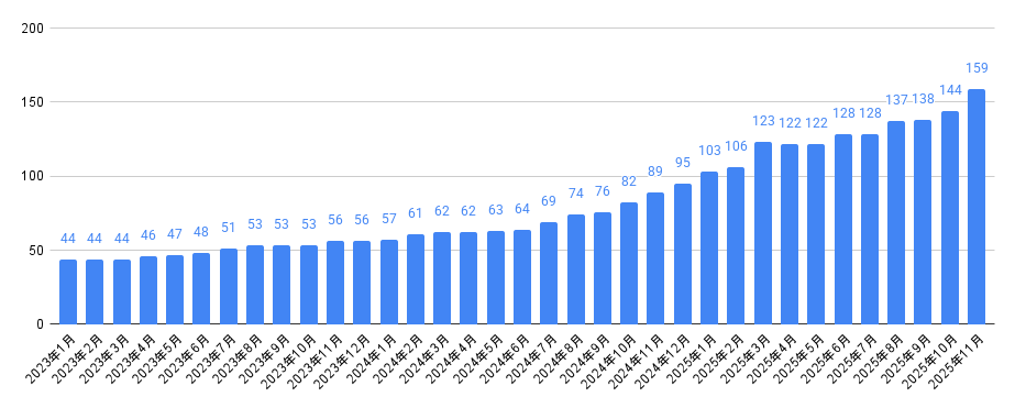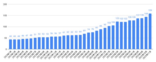 ※「サーモバリア スカイ工法 代理店数」の月別推移