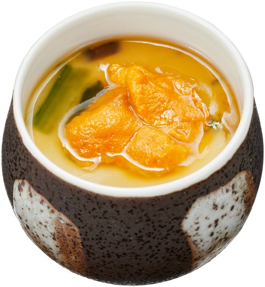 出汁の効いた優しい味わいの茶碗蒸しに、うにをトッピングしました。なめらかな卵の食感と、うにの濃厚なコクが溶け合う贅沢なサイドメニューです。