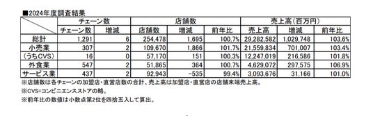 日本フランチャイズチェーン協会の2024年度レポートより