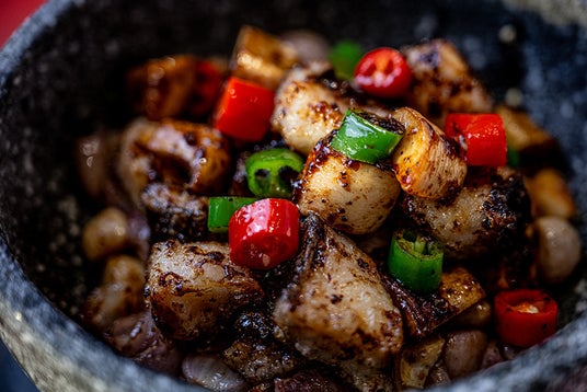 アラスカ産銀鱈の蜂蜜黒胡椒ソース炒め 香味野菜の石鍋仕立て