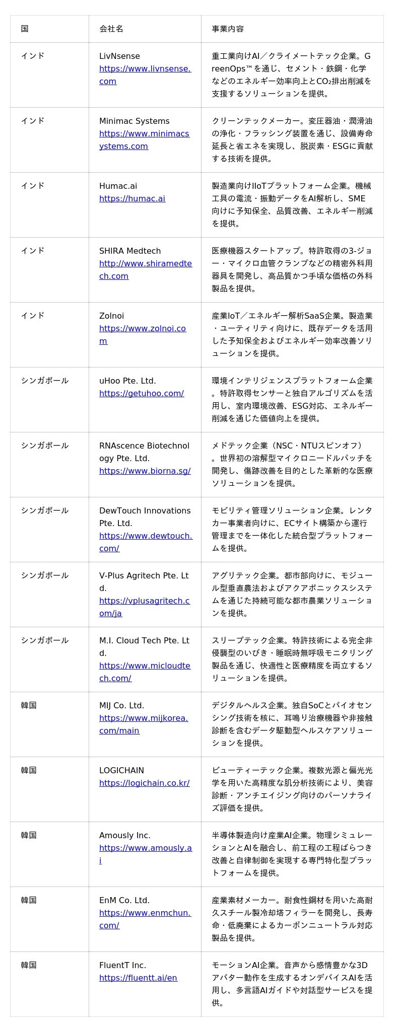 事業創造カンパニーとして企業のオープンイノベーションや新規事業開発を支援する株式会社ゼロワンブースター(本社:東京都千代田区、代表取締役:合田ジョージ、以下「01Booster」)は、「Central Japan Startup Ecosystem Consortium」が主催するグローバルイベント「TechGALA Japan(テックガラジャパン)2026」にて、連携対象国であるインド・シンガポール・韓国から参画するスタートアップ15社を決定したことをお知らせします。採択した15社に対して、エクスカーションプログラムの一環として、日本進出に向けたメンタリング、セミナー、ビジネスマッチング等を提供し、中部エリアを中心として日本進出をサポートします。