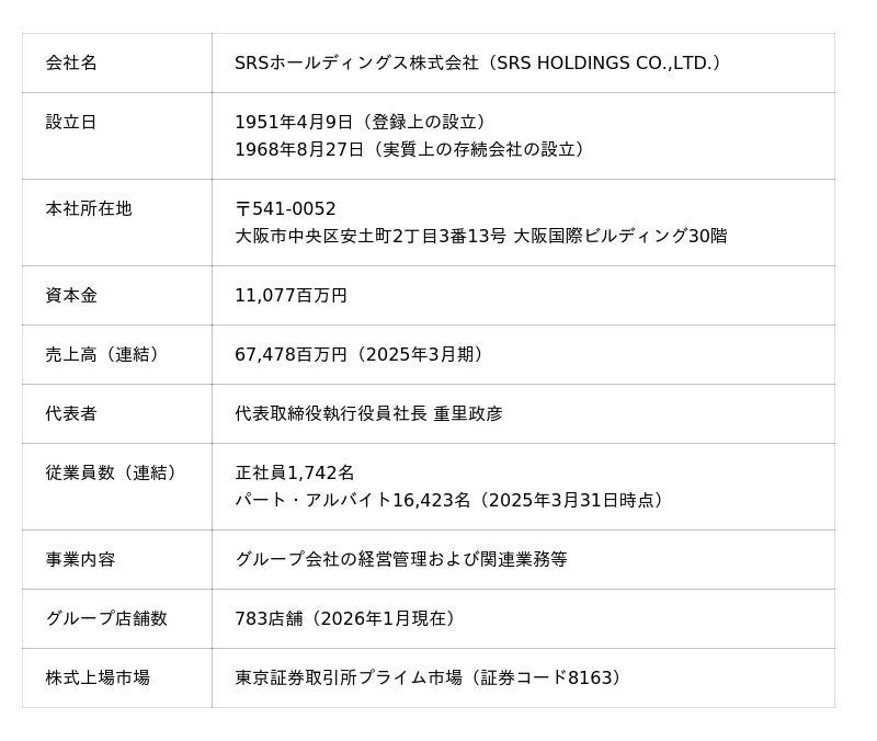 SRSホールディングス株式会社(本社:大阪府大阪市中央区、代表取締役:重里政彦、以下当社といいます。)は、「情報処理の促進に関する法律」に基づいた改訂版「デジタルガバナンス・コード3.0」の基本的事項に対応する企業として、経済産業省が定めるDX認定制度の「DX認定事業者」として2026年1月1日付で正式に認定されましたことをお知らせいたします。