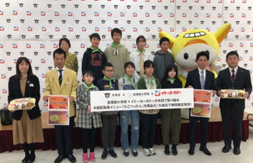 イトーヨーカドー大森店では、2023年9月より大田区や志茂田小学校の児童と一緒に、『たこぺったん』を全国に広める活動を開始し、2024年4月に商品化が実現。2025年2月には『たこぺったん』と「揚げパン」を組み合わせた「ハッピーハッピー弁当」を期間限定で販売してきました。